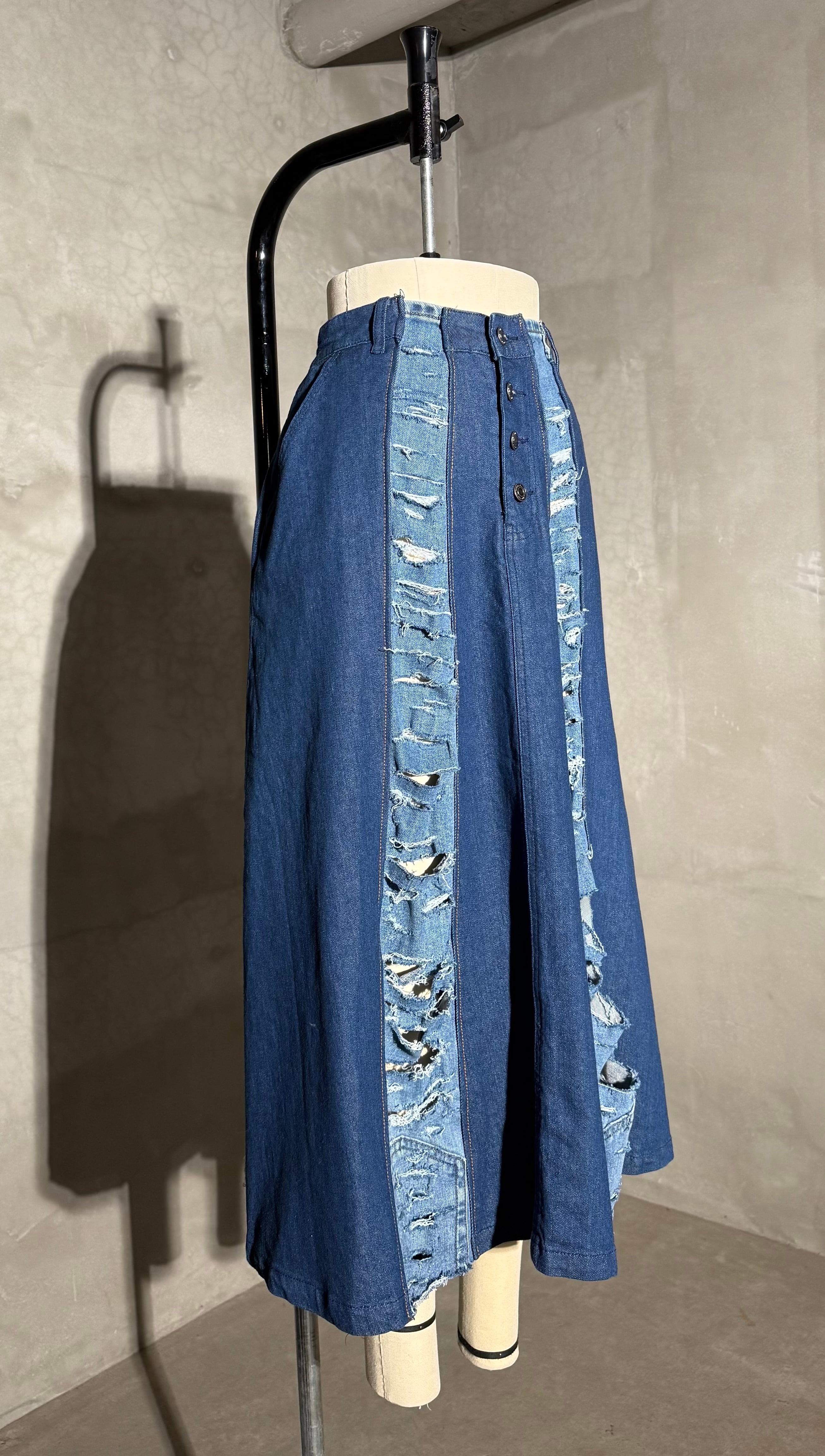 damaged denim skirt