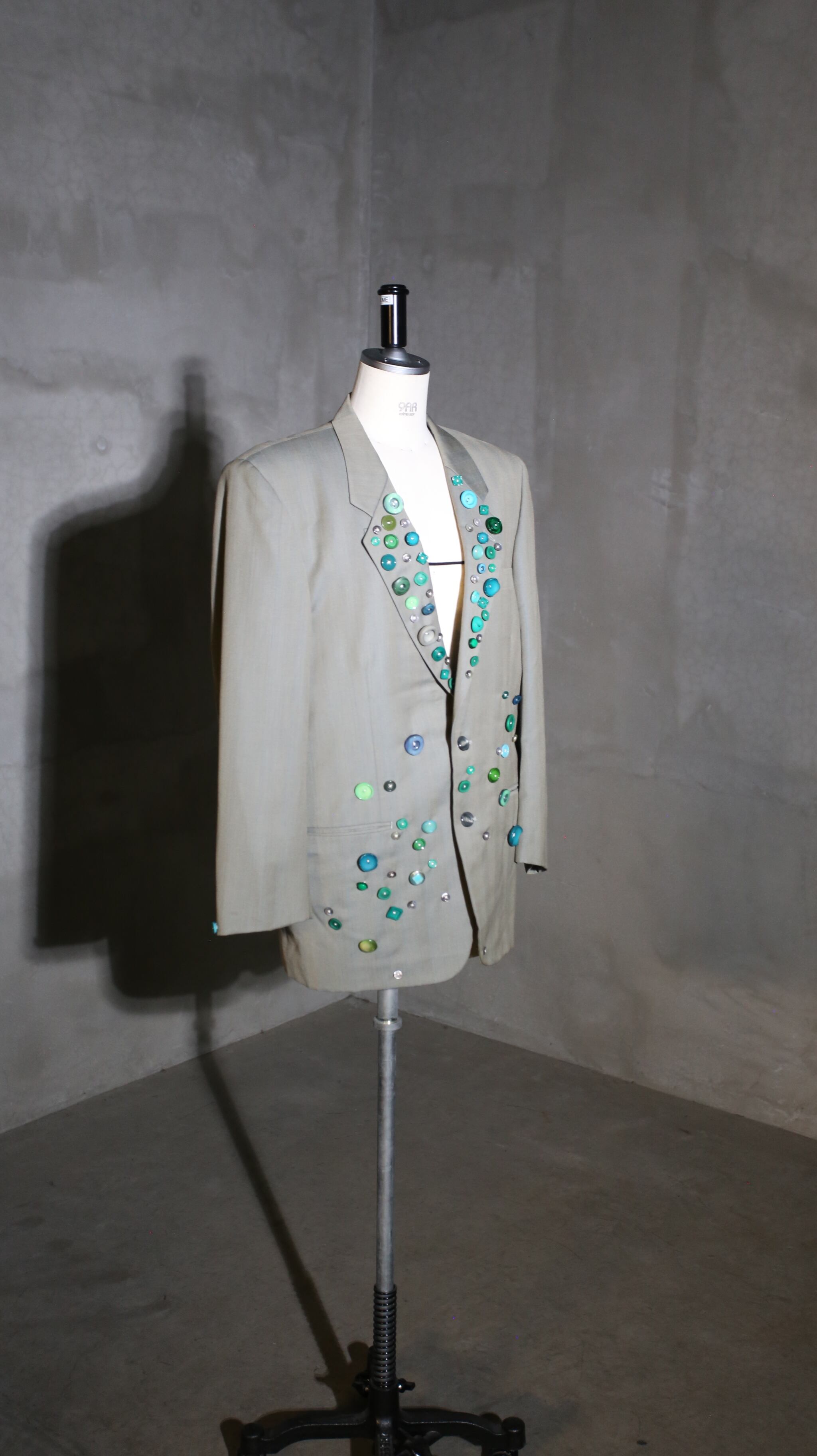 ライトの陰影でしわがよっているように見えますが実際にはジャケットと同じ素材です。