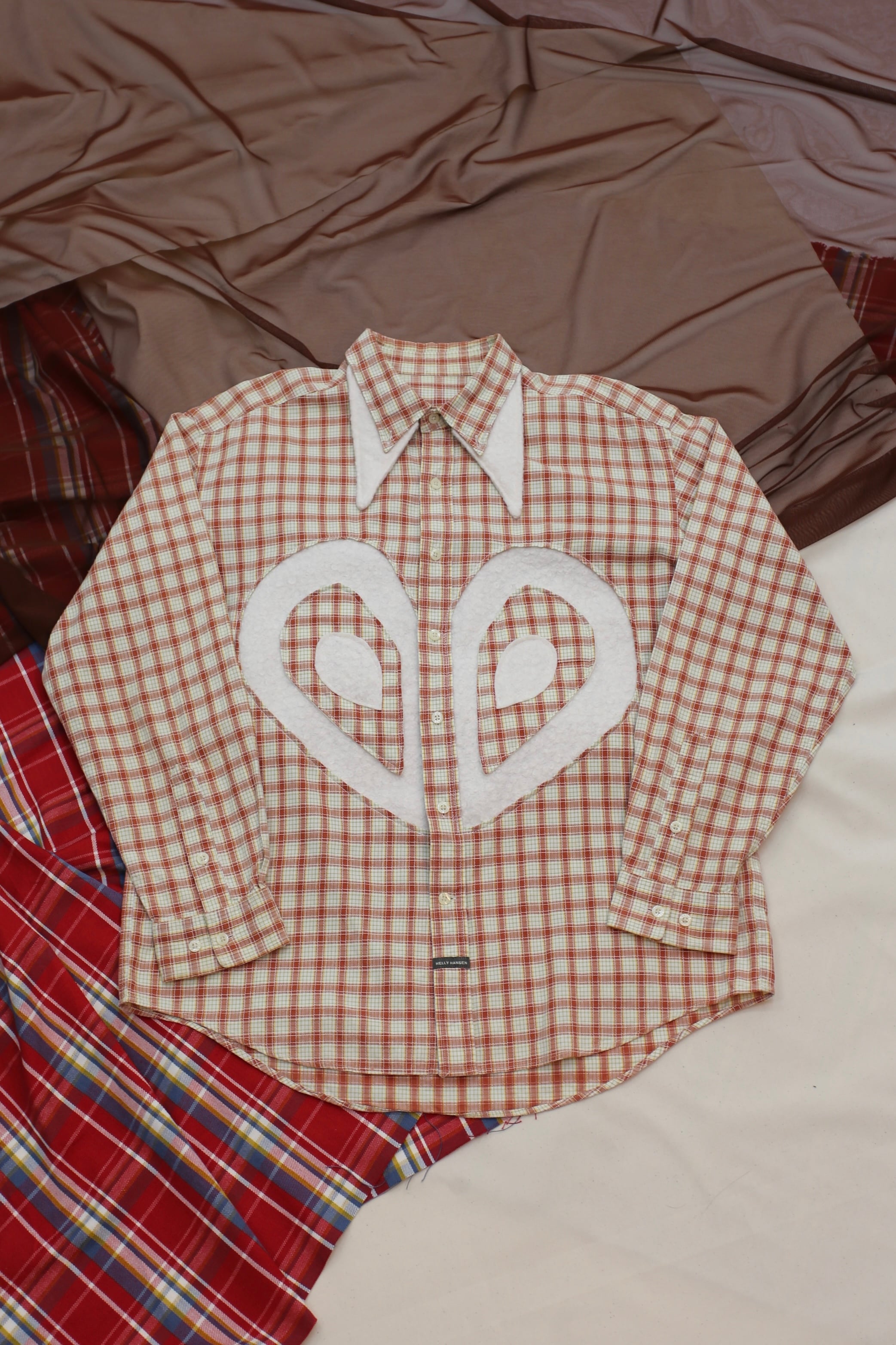 double collar heart shirt / red