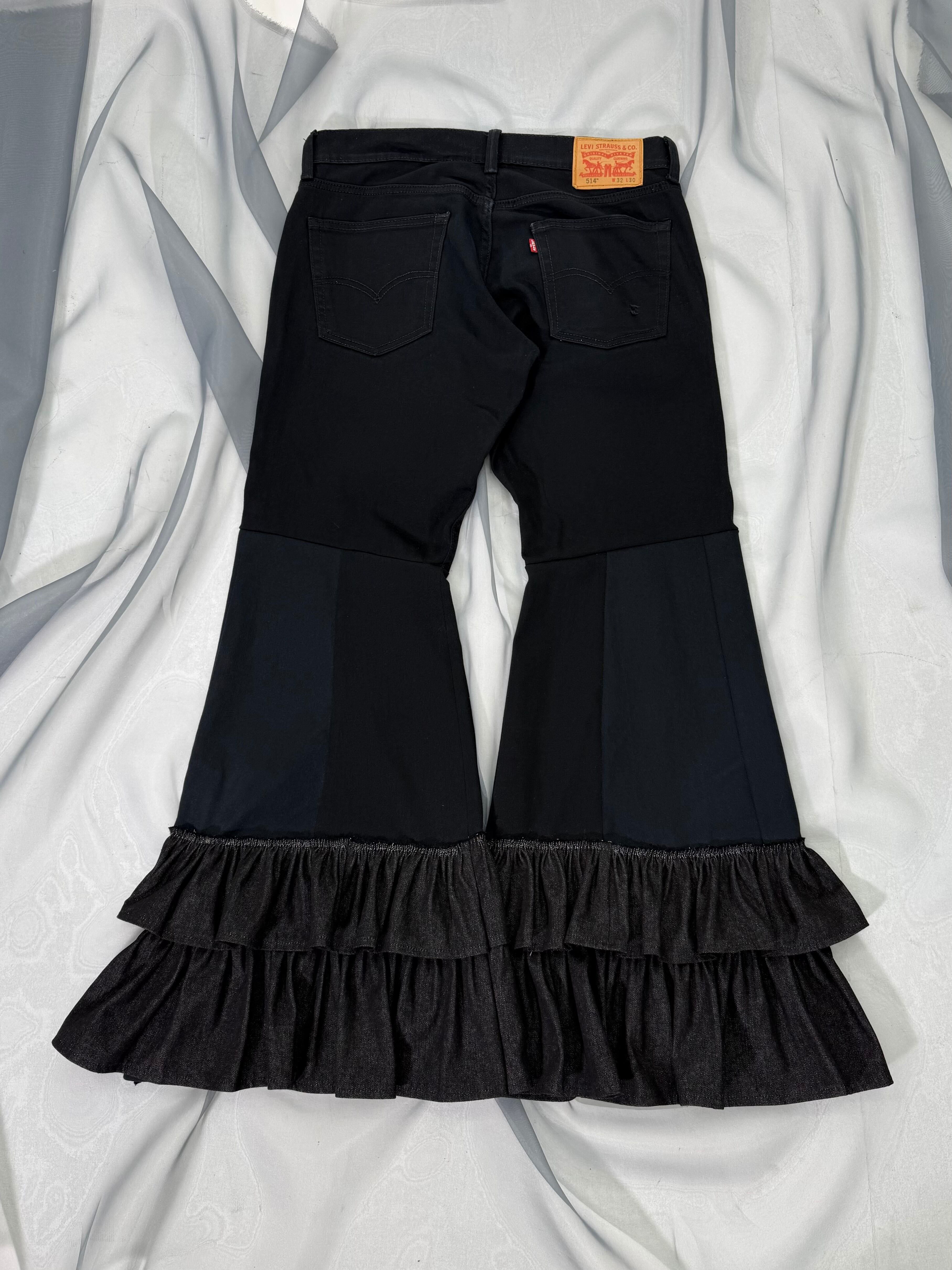 frill flare pants / black
