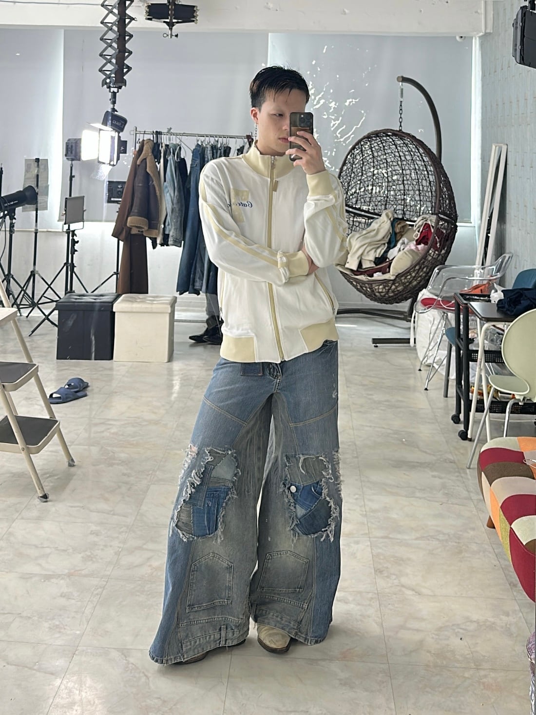 patchwork wide denim / blue