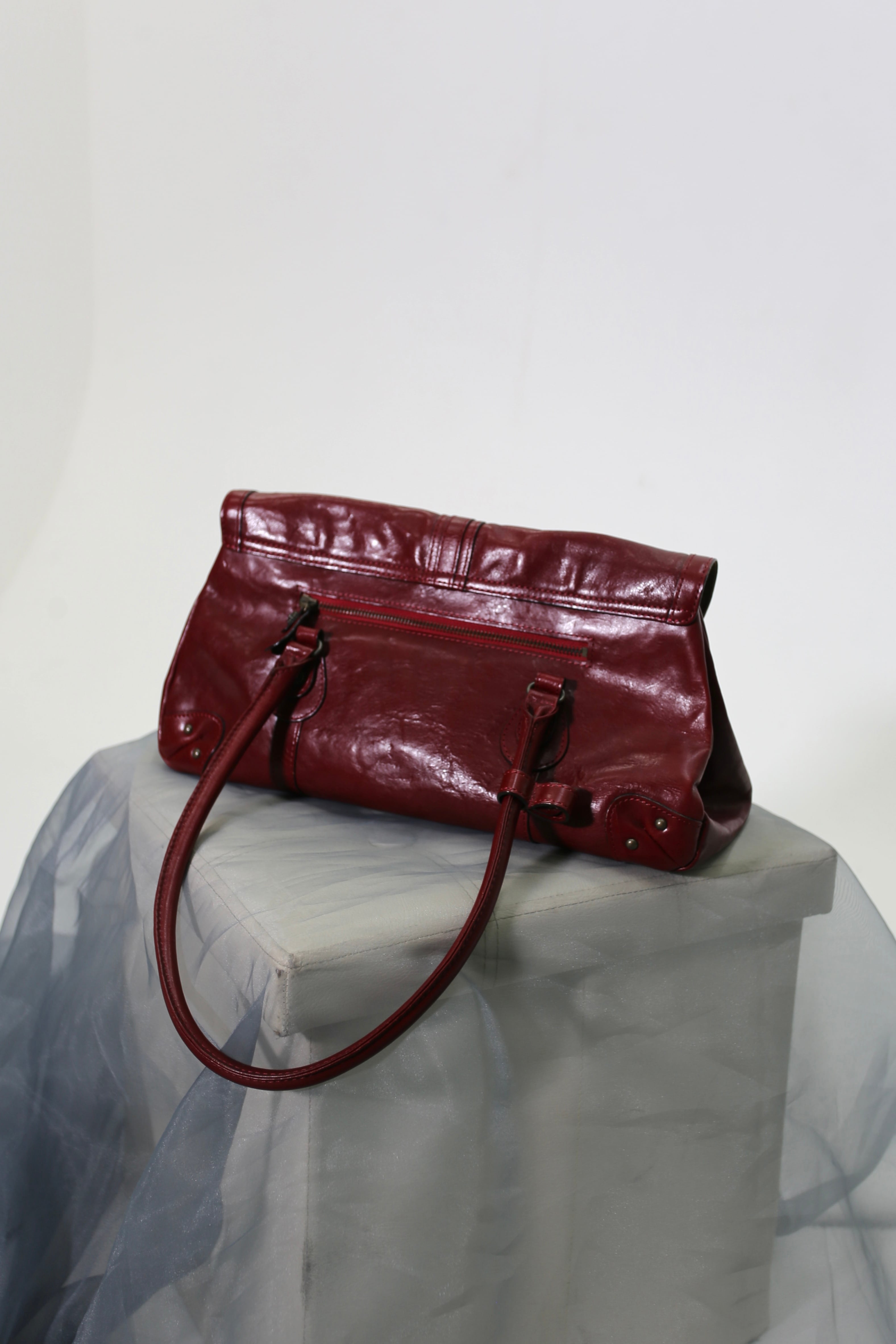 【used】red leather bag