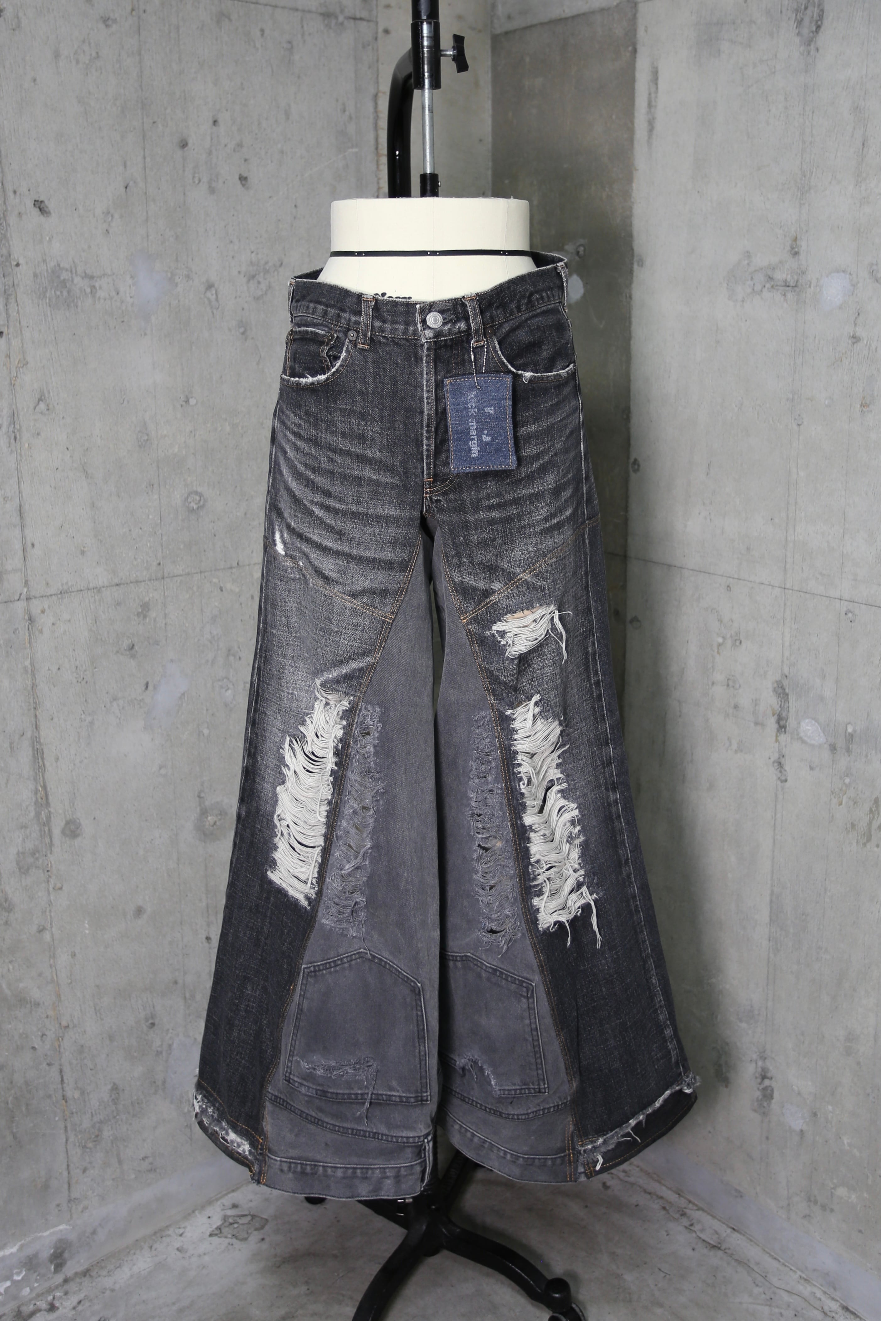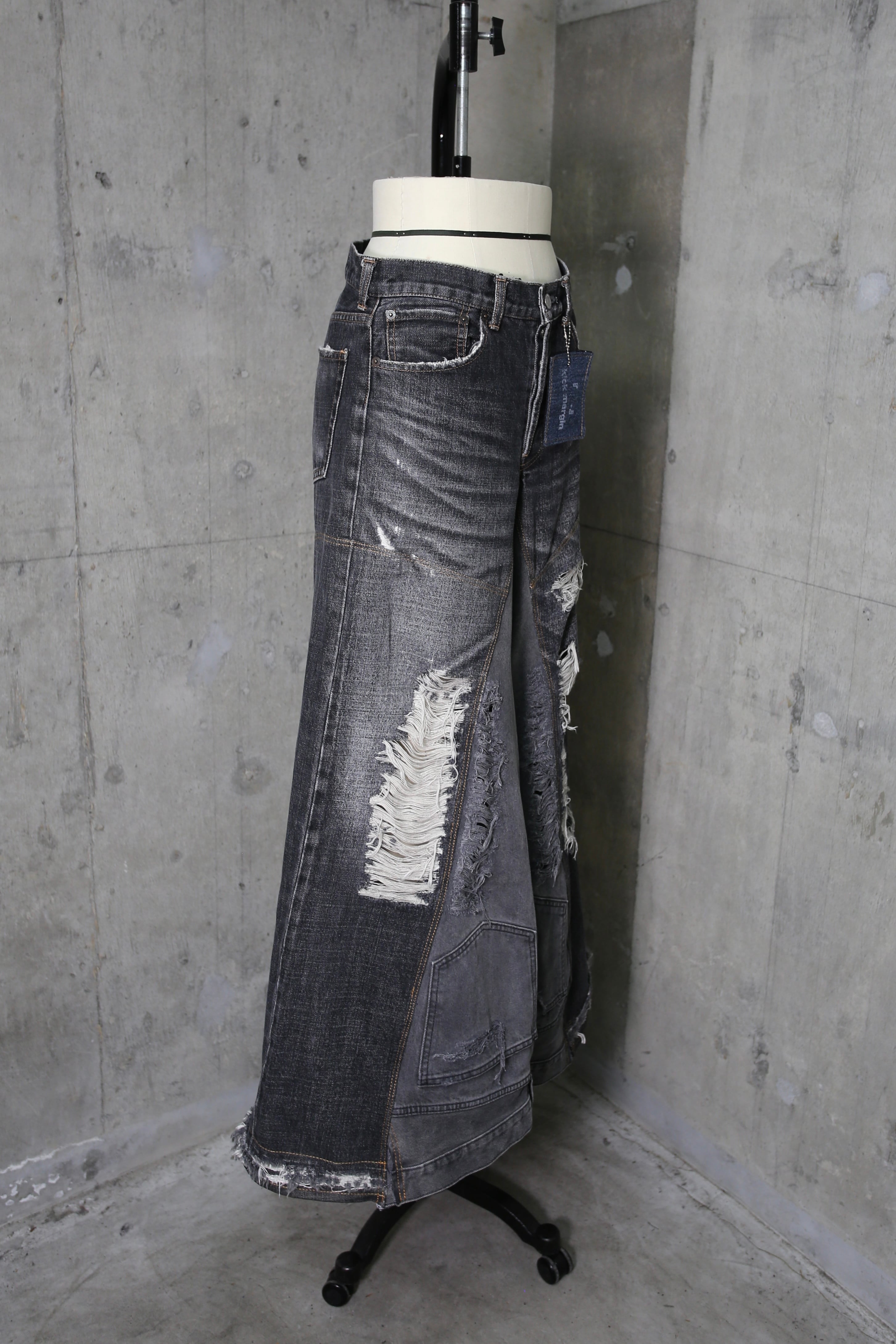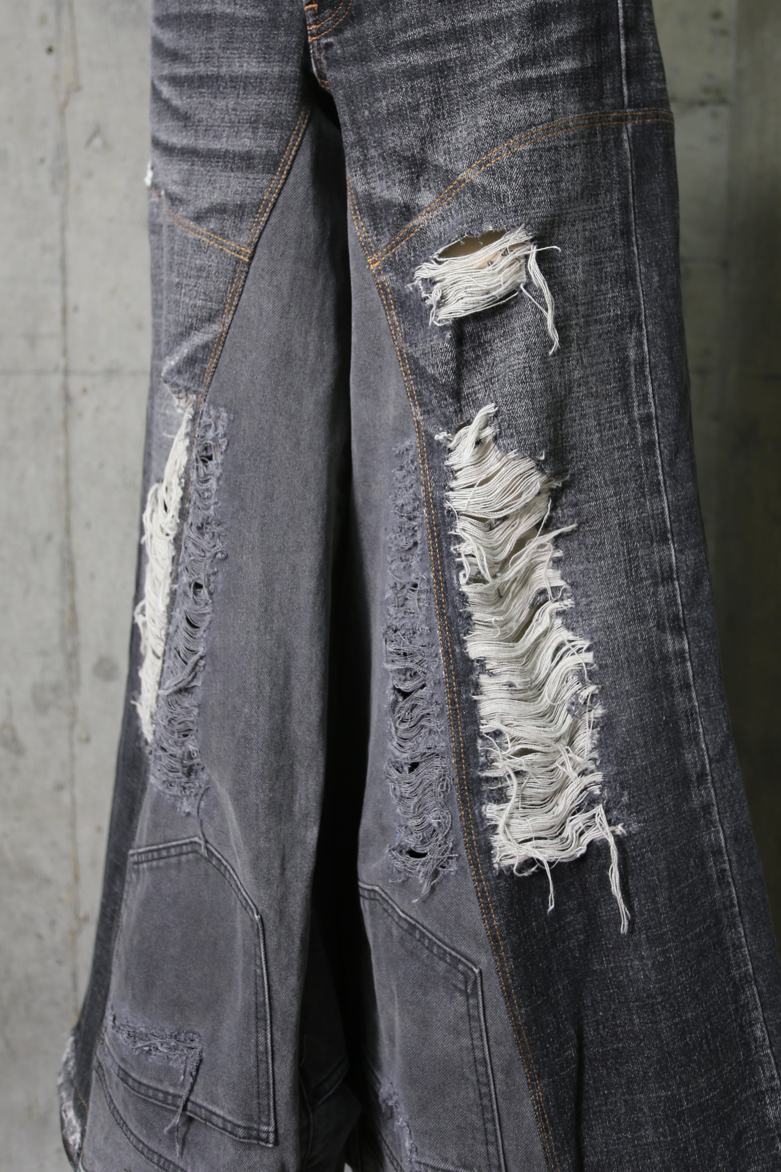 damage denim wide / black